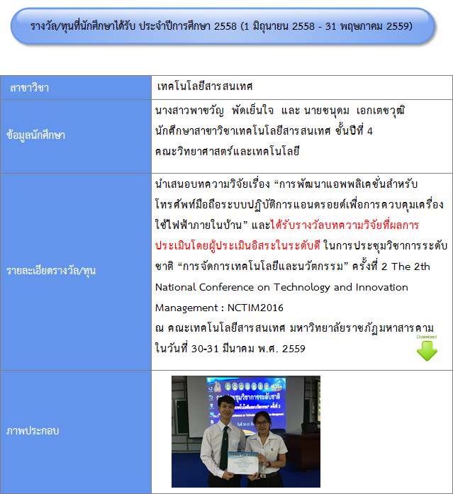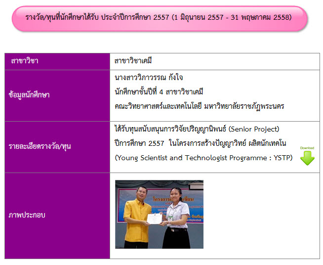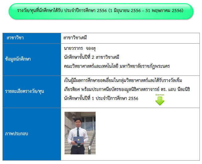 รายชื่อนักศึกษาได้รับทุนการศึกษา