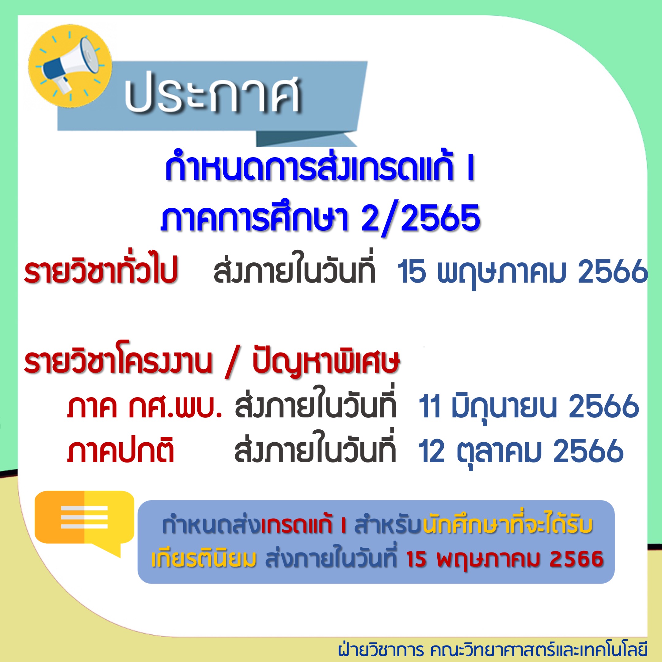 กำหนดการแก้ i ภาคการศึกษาที่ 2/2565