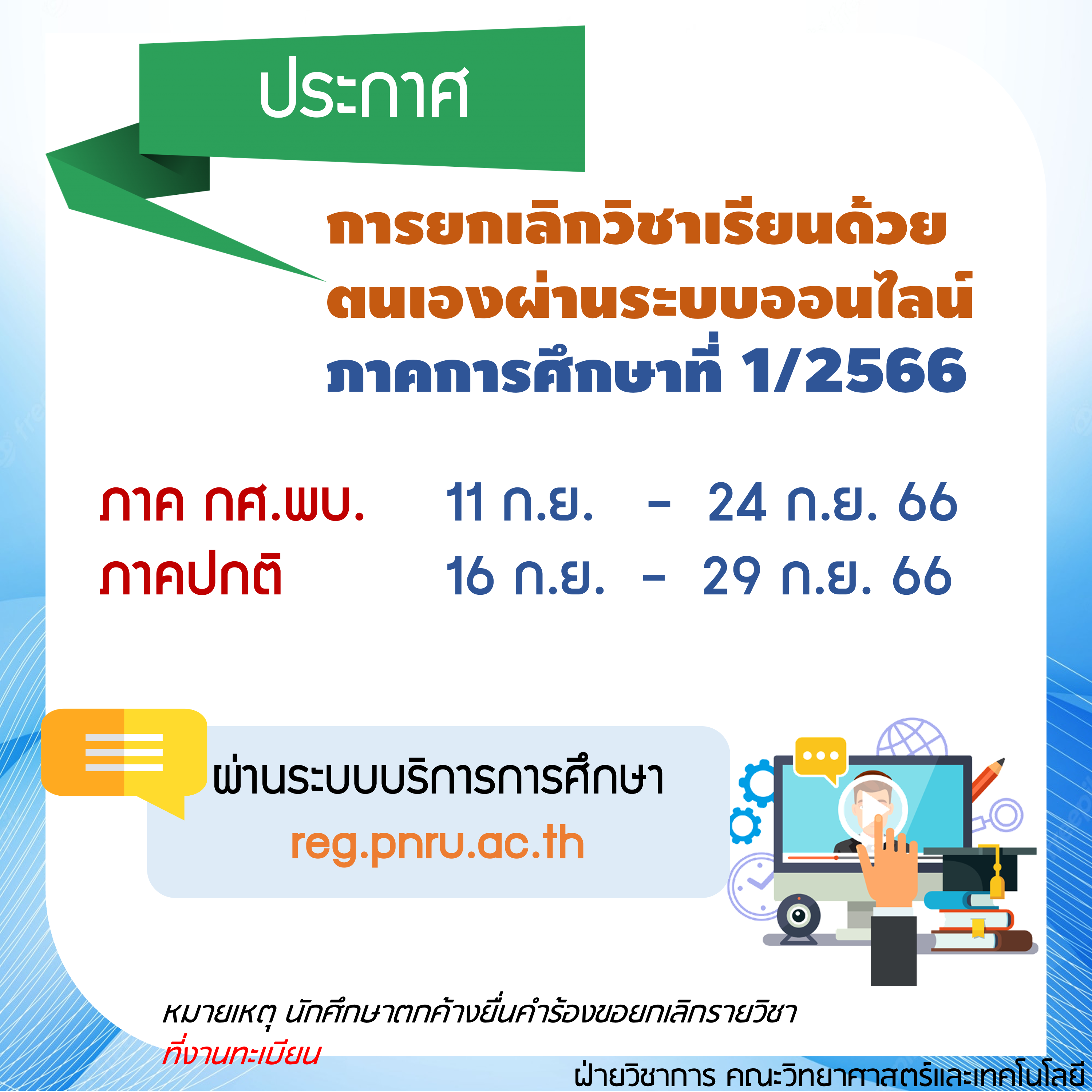 กำหนดการยกเลิกถอนรายวิชาด้วยตนเอง ประจำภาคการศึกษาที่ 1/2566