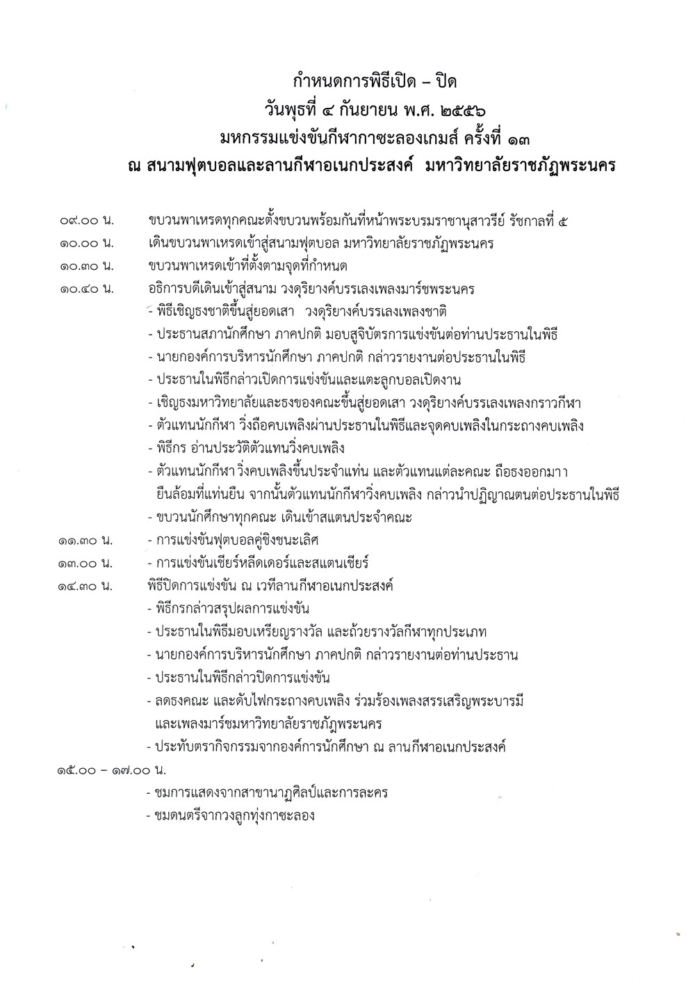 ขอเรียนเชิญคณาจารย์เข้าร่วมพิธีเปิดงานกีฬากาซะลองเกมส์ ครั้งที่ 13
