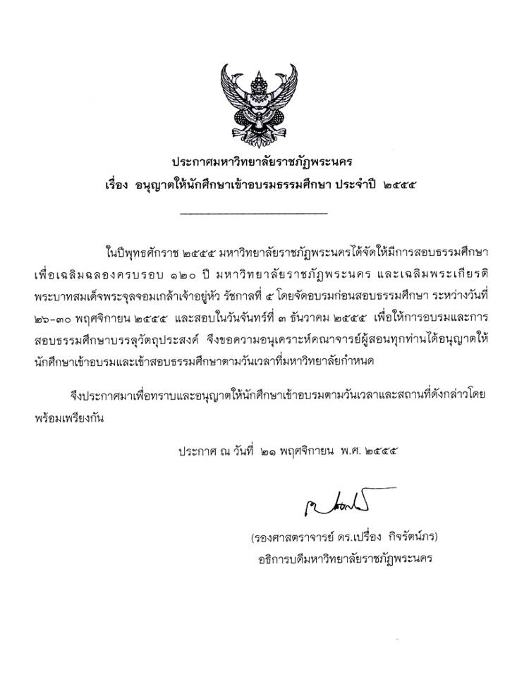 เข้าร่วมงานวันครบรอบการสถาปนามหาวิทยาลัยราชภัฏพระนคร 120 ปี วันศุกร์ที่ 12 ต.ค. 2555 ดังกำหนดการแนบ